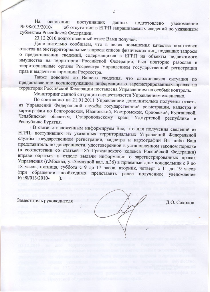 На очереди следующий этап - заявление в "головной офис" Росреестра, благо, в пределах транспортной доступности он располагается. Буду обобщать официальные ответы о "механизме работы" по нарастающей. Повторюсь - подавать в суд на Росреестр до конкретных действий (бездействия), решения ДЖО, ущемляющих права, связанные с непредоставлением гос.услуги Росреестром, считаю преждевременным. Но и срок обжалования надо "не прощёлкать"... А там посмотрим, если дело дойдёт, кто "правее", а кто "левее" - мадам Набиулина или мадам Шевцова?