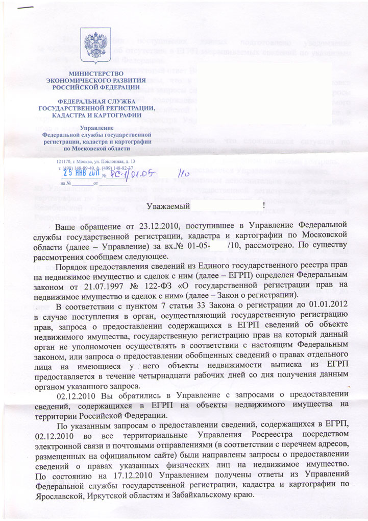 Если кто-то подавал запросы в районных отделах управления Росреестра по Московской области, имейте ввиду, что часть ответов может сейчас находиться не в этих отделах, а на Поклонной.