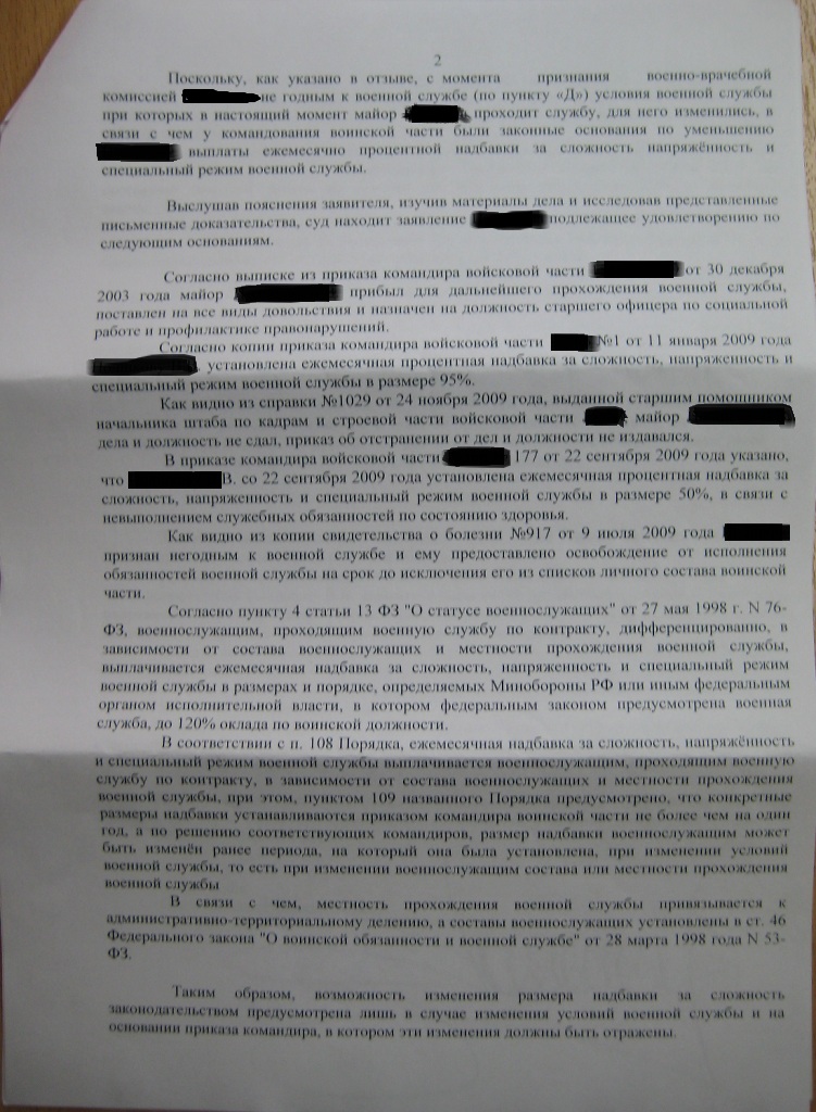 1. Признать действия командира войсковой части , связанные с уменьшением мне надбавки за сложность, напряженность и специальный режим военной службы – неправомерными.