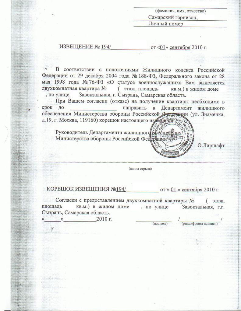 Скорее всего, они были этим приказом узаконены. А к нам первые извещения пришли из ДЖО от 31 июля 2010 года. Вот шума-то было среди военнослужащих-распоряженцев! Таких извещений пришло всего 3, и остальные посчитали, что эти 3 "избранных" военнослужащих имеют какие-то связи в Москве! Затем вторая волна извещений поступила в ноябре, на что остальные военнослужащие уже реагировали более спокойно. Причём те извещения от августа 2010 года отличались по форме от той, которая установлена ПМО 1280. Ну и в завершении этой темы можно сказать-ни один из тех, кому пришли извещения с сентября (по старому образцу) и по декабрь (по новому образцу) так никакого ответа на направленные документы не получилА извещения разве не приказом 1280 установлены?