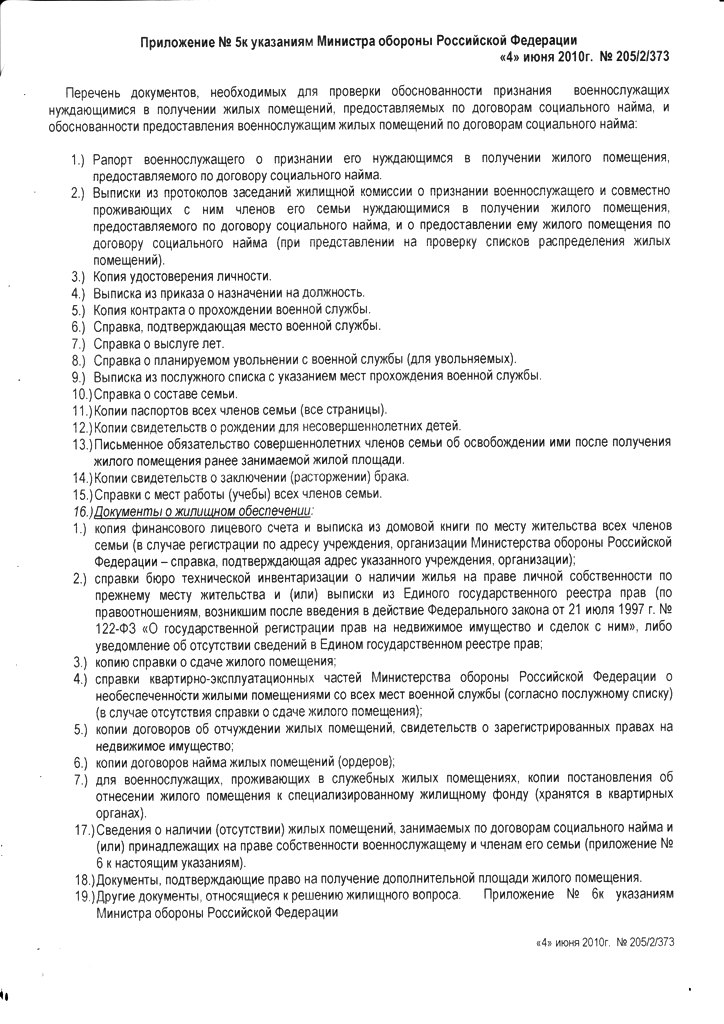 Указания заместителя МО РФ № 205/2/832 от 20.12.2010