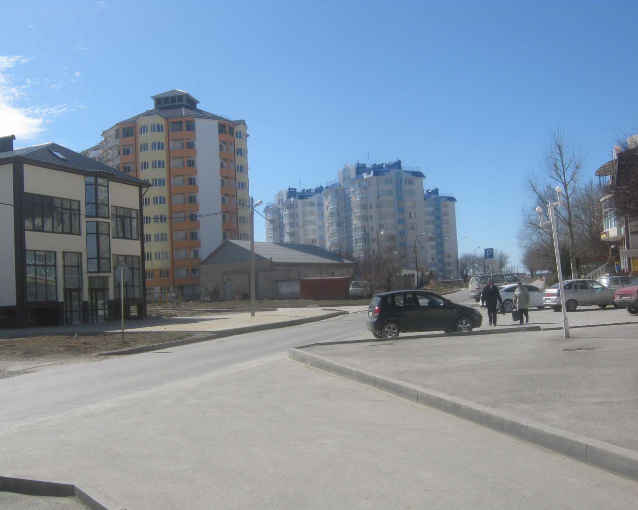 Добавлено спустя 4 минуты 53 секунды: Сразу за девятиэтажными зданиями Вы видите: по центру в метрах 500х - железнодорожный узел. Слева угол бензозаправочной станции и знака город Анапа при въезде /слева/ и на выезде /справа/. Строители уходят с объекта после работы. То есть это то место, о котором говорилось выше - первый въезд в Анапу со стороны Воскресенска . Красная машина справа поворачивает как раз на Симферопольское шоссе, параллельно которому и стоят у дороги эти 9-ти-этажки