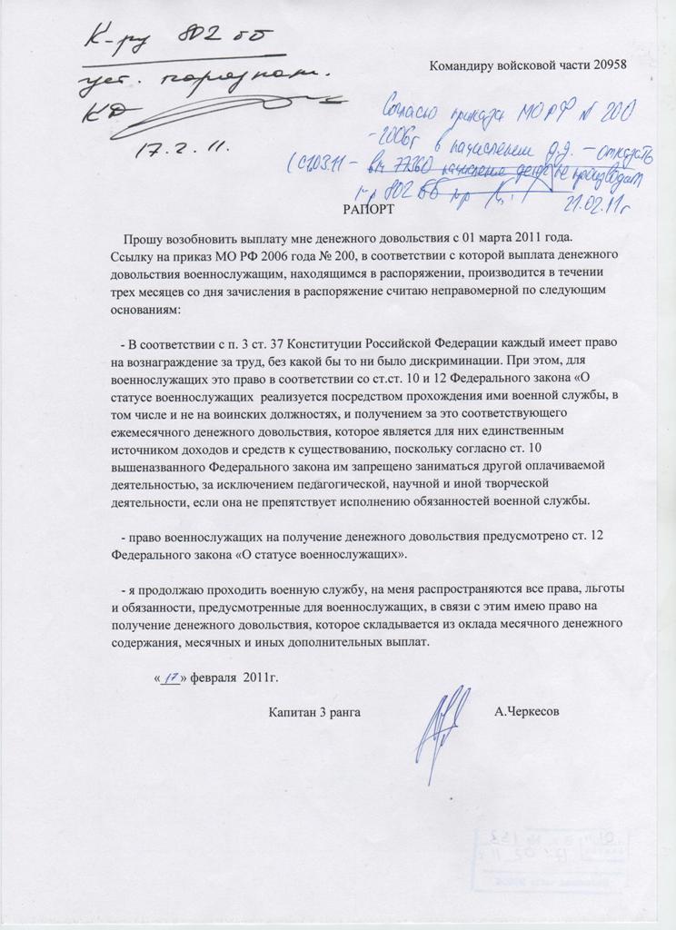 я рапорт писал. прилагаю.А как Вы определили, что Вам выплаты с 1 марта производить не будут?
