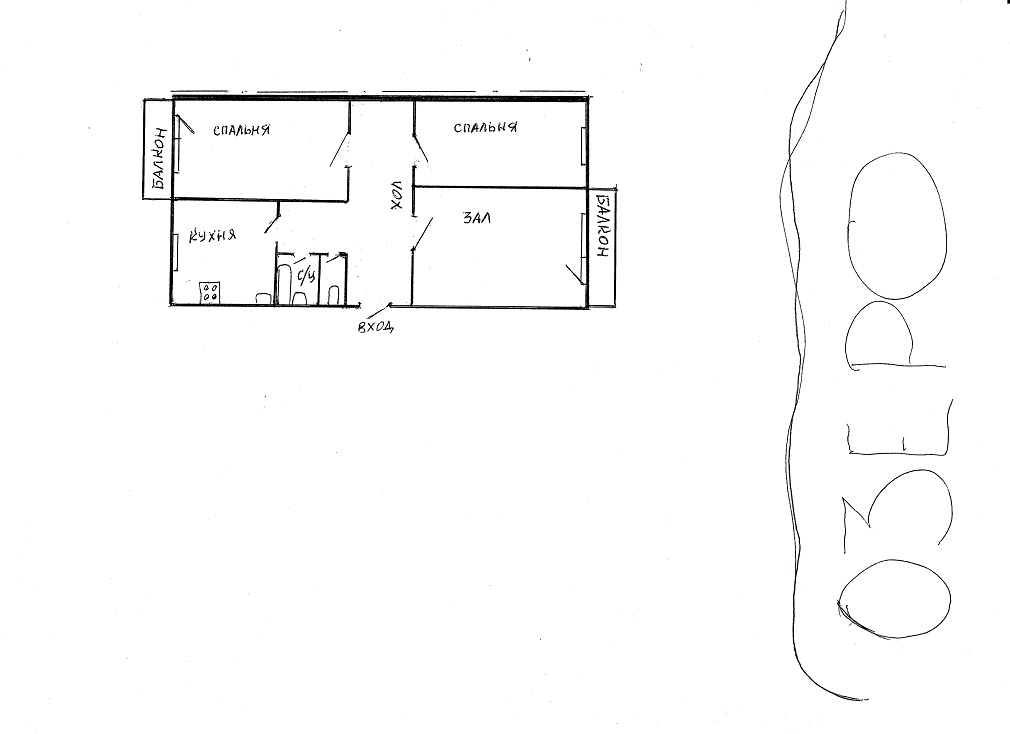 А сколько квартир в вашем подъезде, 2 или 3 и какие?старкэп писал(а):Селезнева 104/1,как я понял из всего увиденного и прочитанного выше,планировка трешки выглядит примерно так:Рисунок.jpgДа вы практически всё правильно нарисовали, одно "но": за кухней идёт не спальня, а зал (там комната примерно метров 20-21). А там где у вас зал идёт комната метров 19, за ней комната поменьше (15-16м). А так всё верно и расположение балконов такое как на рисунке. На счёт запасных выходов на др. сторону, то этого в этом доме нет, т.к. 1-ый этаж под магазины и прочее.