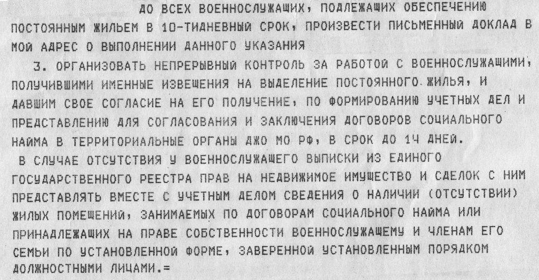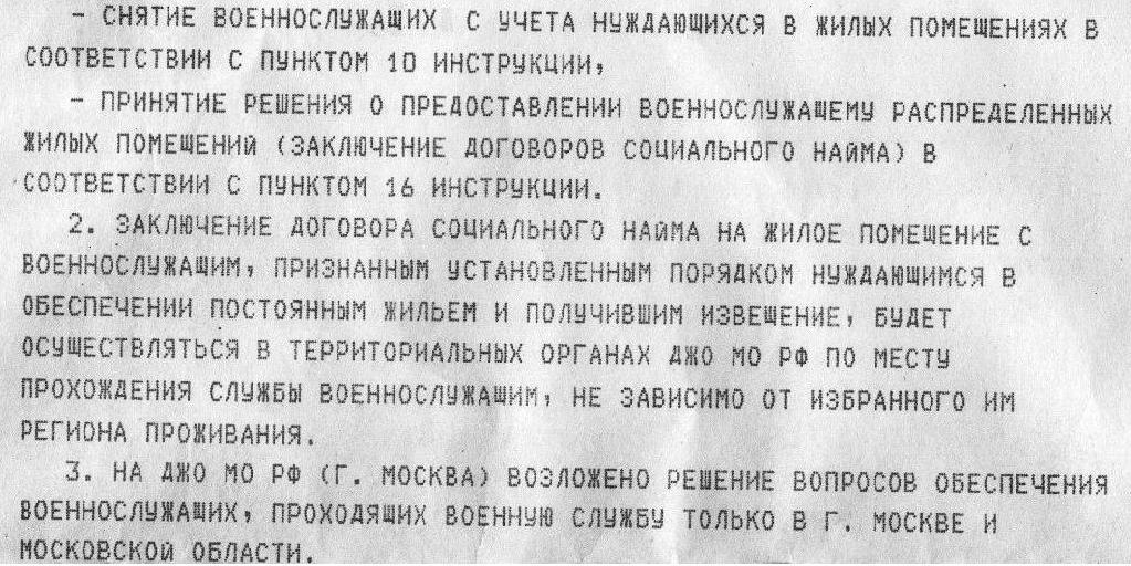 2. Заключение ДСН на жил.помещение с в/служащим, признанным уст.порядком нуждающимся в обеспечении постоянным жильем и получившим извещение, будет осуществляться в территориальных органах ДЖО МО РФ ПО МЕСТУ ПРОХОЖДЕНИЯ СУЖБЫ в/служащим, не зависимо от избранного им региона проживания.