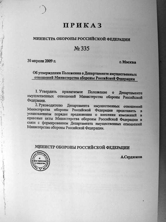 Где бы еще "нарыть" указания Министера обороны Российской Федерации от 11.09.09 г. №205\2\646 и письмо Руководителя ДИО Министерства обороны Российской Федерации от 8.11.10 г. №141\20751, в котором по всей вероятности он подставляет Департамент жилищного обеспечения МО РФ под уполномочивание на принятие решений о приватизации жилья...