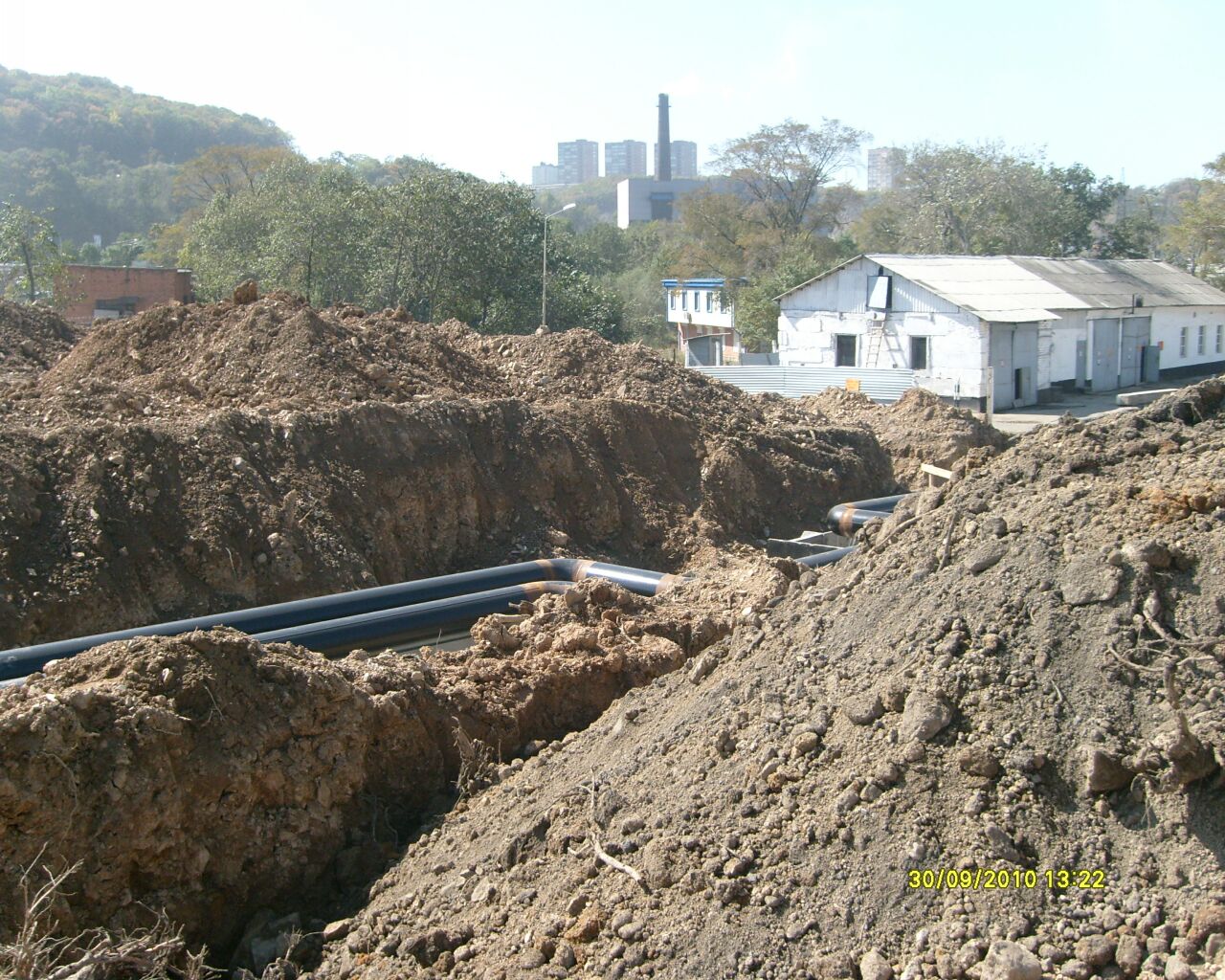 Крутовато, для ветки под тех. нужды. 2 трубы в бетонном коробе, с теплоизоляцией (закопаны вдоль речки), диаметром каждая мм по 800. Врезка в систему котельной "Северная" напротив дота на углу забора арсенала, тоже не для показухи ИМХО.