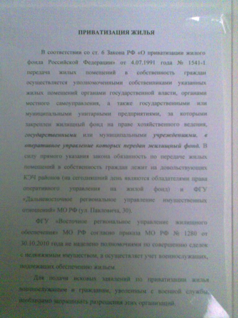 Вот и наш уважаемый PopovDV, с помощью своего метода сделал вывод. Вот и получается,не базар,а обман и лизоблюдство командования. Друзья были в Пади поздно вечером в воскресенье,говорят работает киоск продуктовый,видимо для работяг.Продавщица сказала,что из новоселов,якобы живущих, еще никто не приходил.Сегодня знакомая была на Партизанском,показывала наш договор.Сомнений не вызвал,сказали,что если орган наделен правом и имеет Устав,может дать согласие и приватизация пройдет без проблем.Все реально занимающиеся эксплуатацией домов дружно говорят - воды света нет. Все босы от командира части и выше - что все есть. Что это?? Я так думаю, что "..группа лиц по предварительному сговору... используя служебное положение....решила нарушать Гарантии правовой и социальной защитывоеннослужащих, граждан, уволенных с военной службы, и членов их семей.."