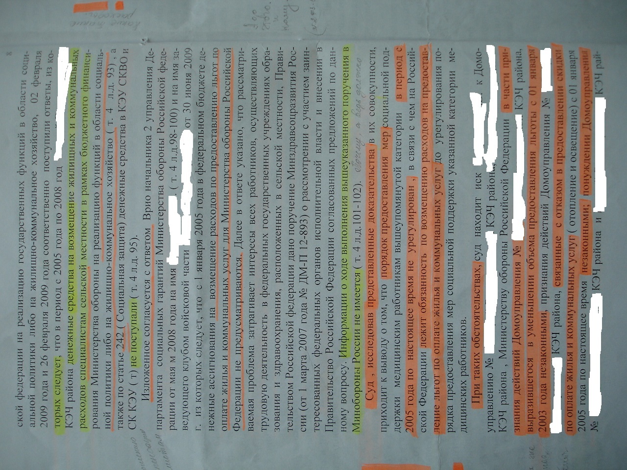 По просьбе Наивного выкладываю решения суда по льготе медиков на селе, сразу предупреждаю, что в настоящее время имеется совсем другое решение (после отмены в ВС РФ аналогичного дела, где я был представителем), по-этому в дальнейшем не боролся, так как денюшку возместил, но с решением суда, как оно написано, я категорически не согласен, в части отказа в признании незаконности действий со стороны ДУ и КЭЧ и я, в последствии, этого добился, но так как у меня нет разрешения на публикацию выложить его пока не могу. В нём действия признаны незаконными и ДУ обязано предоставлять скидку в оплате как и ранее до момента, когда Правительство примет соответствующий НПА, то есть до ишачей пасхи