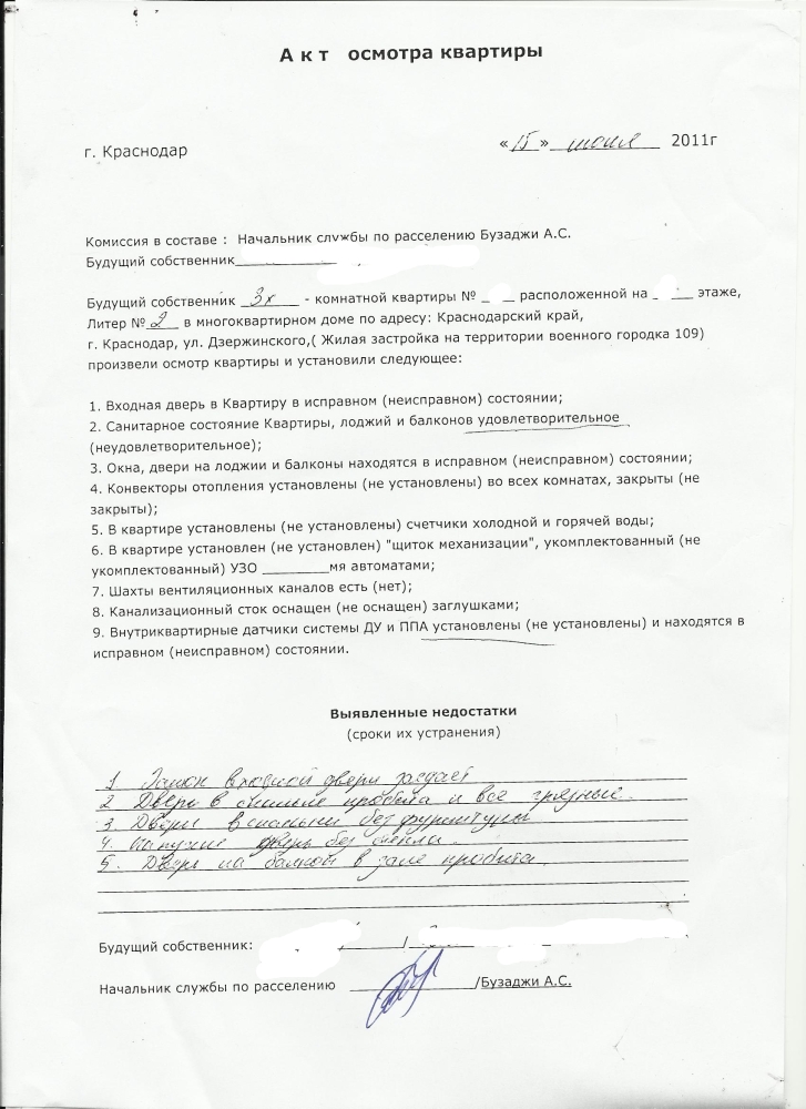 такой же заполнял в конце марта ещёне акт приёма, а акт осмотра квартиры, он предварительный, для застройщика