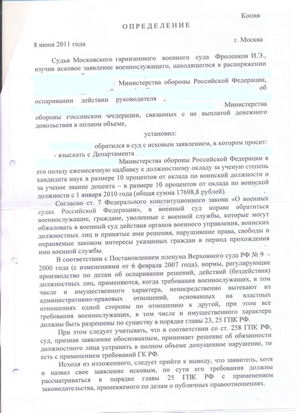 МГВС удовлетворил моё исковое заявление на выплату надбавок за ученую степень и ученое звание. Вот решение: