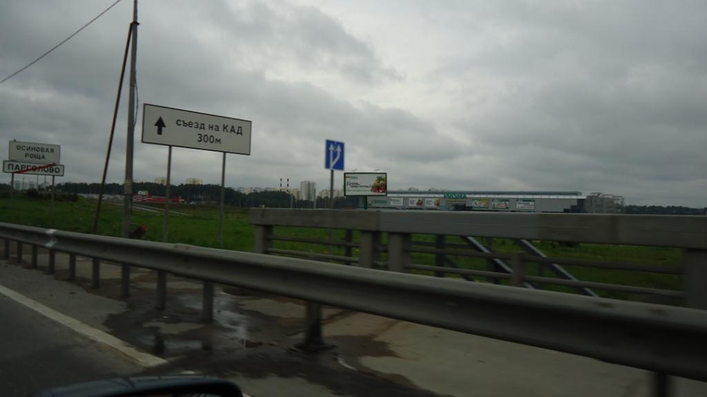 Обратите внимание, въезжаем в "Осиновая роща" и знак, что "съезд на КАД через 300м"...