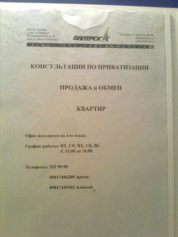 У нас, квартира служебная и полная неразбериха в месте бывшего домоуправления. Это "Славянка",