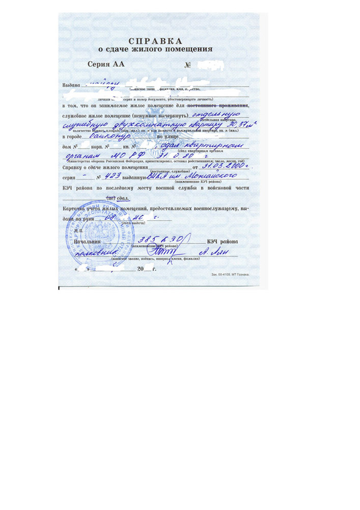 - Эта справка получается не в Мирном, а в территориальном отделении, где их выдают (названия не знаю, сорри), но одназначно не в Плесецке. И получается она после сдачи квартиры администрации города.