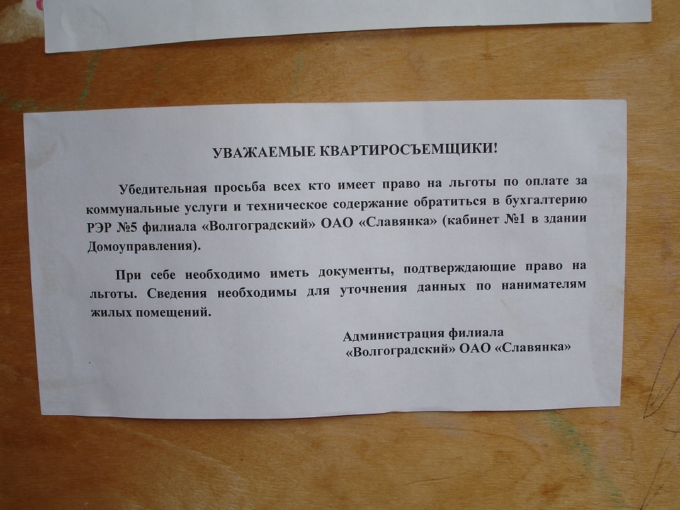 Оказывается в нашем городке развешены объявления на подъездах домов, кроме нашего. Ходил и не знал