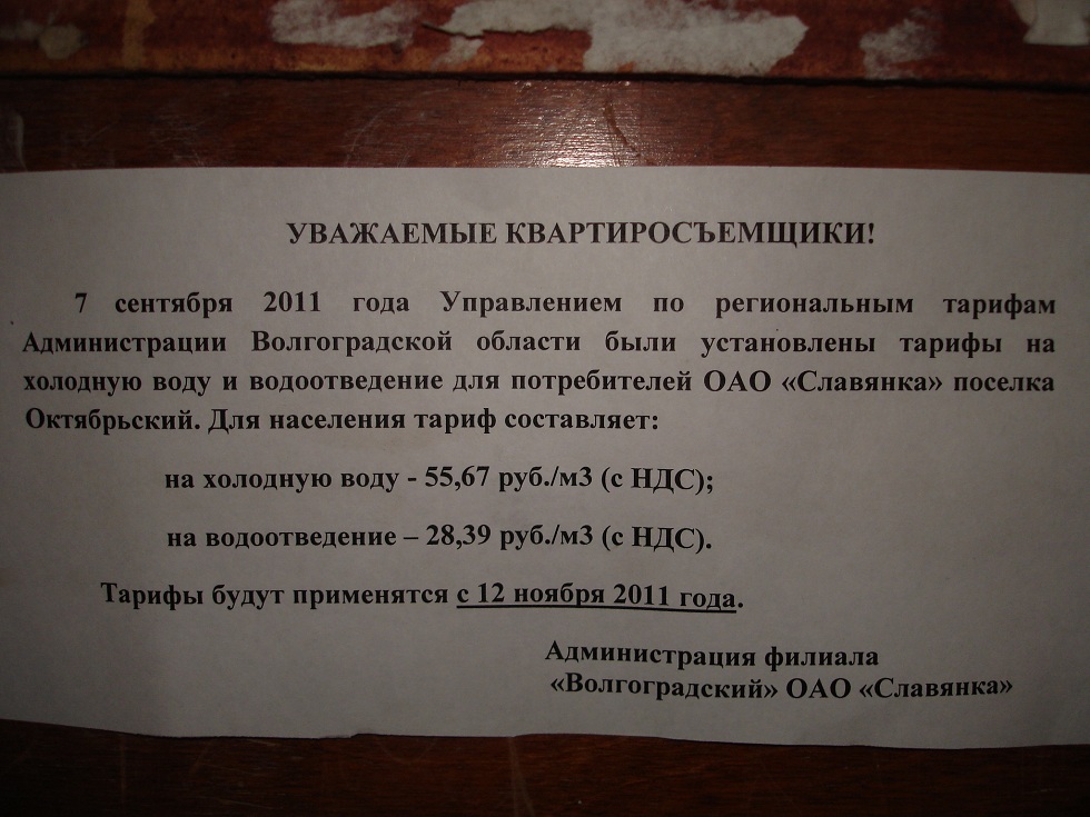 Прошу совета у знающих, что лучше, написать жалобу в прокуратуру области о несоответствии утверждённых тарифов для населения (применительно к нам) их же принятым предельным индексам повышения размера платы (115 %), а повысили на 200 % ХВС и на 508 % водоотведение?