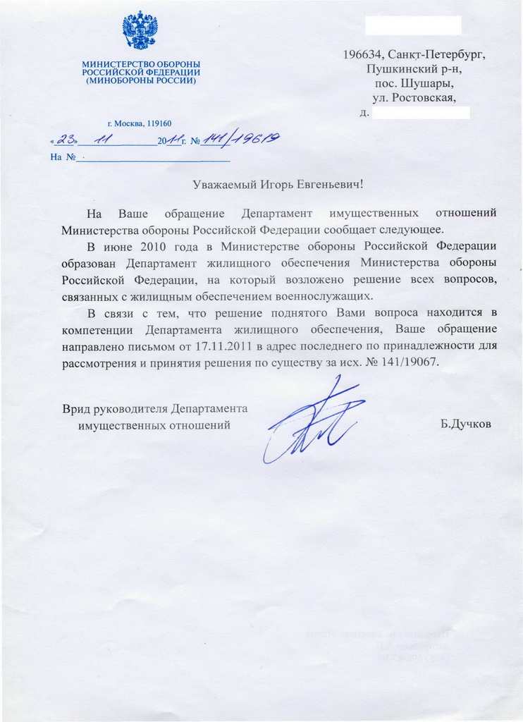 Мне 1 декабря довели, что на меня пришло решение и ДСН в Оренбург(филиал ЦРУЖО) и у меня есть 10 дней на сбор необходимых документов, сдачи служебного жилья и снятия с регистрации, после чего прибыть для заключения ДСН. 8 декабря в Оренбурге мне сразу вручили три док-та: -Решение о заключении ДСН; -Решение о снятии с учета нуждающихся в жил. помещениях; -ДСН., и сказали, что в некоторых регионах для прописки требуют доверенность от представителя МО(как собственника жилья) на каждого члена семьи. Что за зверь такой пока не знаю, потому и спрашиваю. Мой товарищ в январе получал жилье в Краснодаре (Афипский)- у него требовали при прописке. Раз уж в Славянке не требуют и слава богу... Спасибо всем, кто откликнулся.Это что за зверь такой? Кроме ДСН и паспорта ничего не нужно.