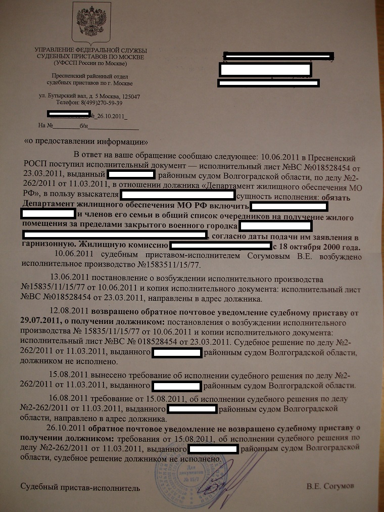 Подтверждаю, по телефону отвечают. А вот как они исполняют решения суда можно посмотреть в теме "как добиться исполнения решения суда" там выложен вымученный ответ от СПИ. Жаль поздно дали наводку на эту веткуВопросами ДЖО занимается Пресненский районный отдел судебных приставов. г. Москва, ул. Бутырский вал, дом 5. Управление ФССП по г. Москве. Телефон делопроизводства отдела - (499)270-5934.