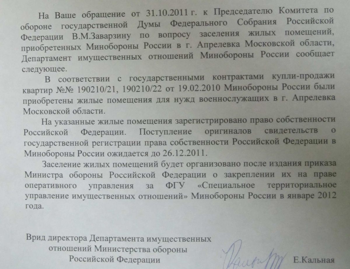 Вот это хорошо, что появилась конкретная информация с номерами госконкрактов - будет, что предъявлять в беседе с Гринёвым, ну а кто заселился давайте за них порадуемся. Как я и говорил, может к середине января ещё информация из прокуратуры будет, кто писал по Апрелевке.