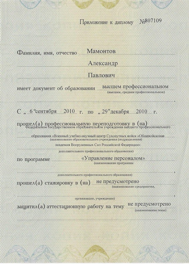 "повышение квалификации по военной специальности"