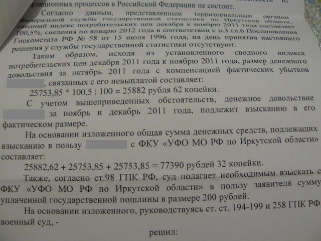 Только что пришло смс. Перечислили задолженность за поднайм (за октябрь-декабрь) в сумме 10800 (Калужское УФО). Во как, даже и не ждал.