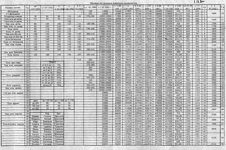 28 декабря 2002 г. Министром обороны Российской Федерации был утвержден уточненный штатно-тарифный перечень воинских должностей высших, старших и младших офицеров Вооруженных Сил Российской Федерации.