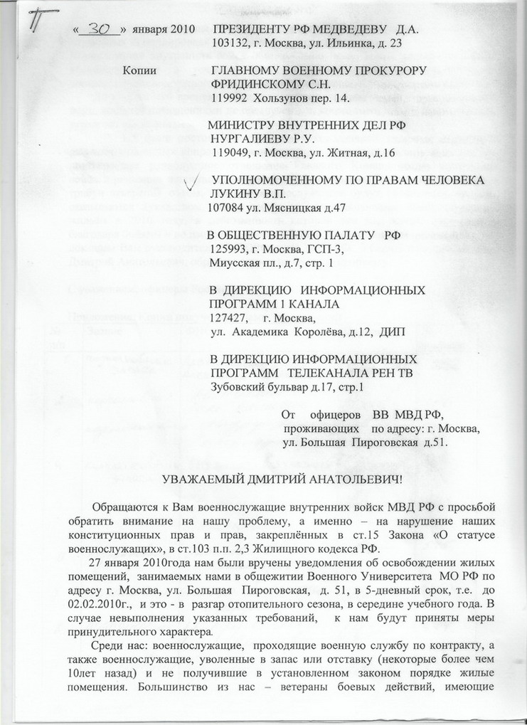 Некий архив свой откопал. Борьба за жилье, в т.ч. что бы не остаться на улице. Нашел отписки МГВП 2-х летней давности по выселению и куда отправляли коллективные (12 чел.) обращения. Ну никаких нарушений наших прав нет. :D