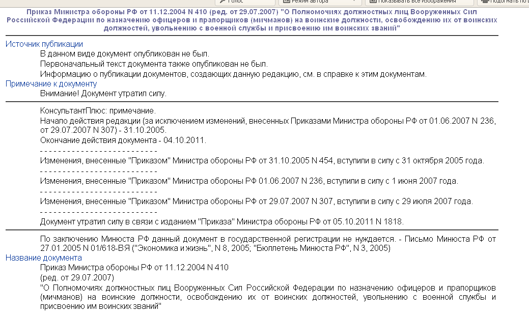 #376обжалуйте приказ главкома, превысившего свою власть по изданию приказов по личному составу, в связи с утратой силы Министра обороны Российской Федерации от 11 декабря 2004 г. N 410 "О полномочиях должностных лиц Вооруженных Сил Российской Федерации по назначению офицеров и прапорщиков (мичманов) на воинские должности, освобождению их от воинских должностей, увольнению с военной службы и присвоению им воинских званий" и от 1 июня 2007 г. N 236 "О внесении изменений в Приказ Министра обороны Российской Федерации от 11 декабря 2004 г. N 410,приказ главкома от 26.12.11