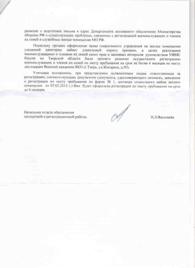 В случае необходимости, эту писульку от УФМС, ни один суд, тем более Тверской ГВС, не воспримет как аргумент подтверждающий "неполную" необеспеченность военнослужащего жильем. Аргумент будет один - есть ДСН - свободен.