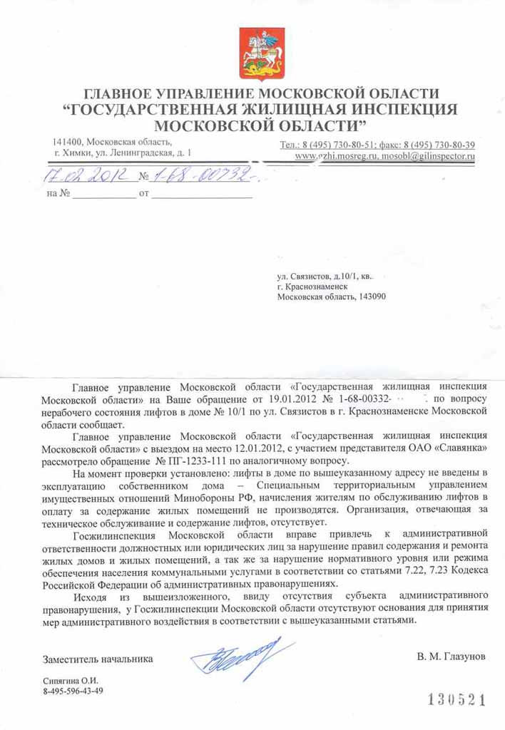 Направляю вам ЖАЛОБУ ФИО на действия (бездействие) должностных лиц, принявших 17-ти этажный многоквартирный жилой дом по адресу Московская область, город Краснознаменск, улица Связистов, дом 12/1 без работоспособных лифтов и заселивших его в таком состоянии.