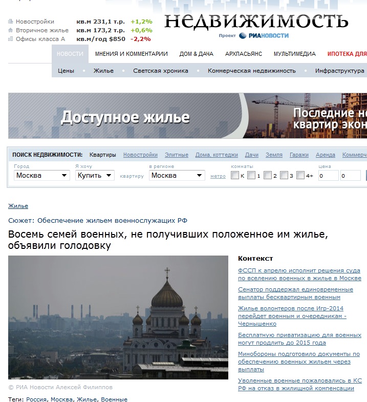 Голодающие военные получат квартиры от Минобороны не позже марта