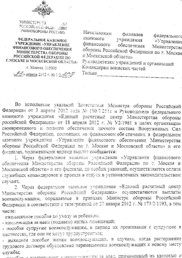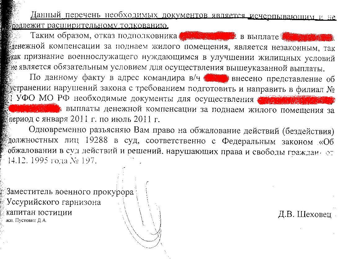 По опыту обращения в суд по данному вопросу могу сказать, что главное на мой взгляд правильно сформулированные исковые требования заявленые в суде:в случае если вс просит суд обязать УФО на основании предъявленных в соответствии с НПА документами выплатить ден компенсацию за ... месяцы, то в моем случае судья не истребовал никаких доп. документов, и все потуги Уфологов о представлении доп. документов заявленные в суде оставлены без удовлетворения.я не отождествляю. я немного о другом. суд делает вывод о законности или незаконности выплаты на основании ВСЕХ документов, в том числе и представленных по требованию суда, при этом принимает во внимание, что мой отказ был основан НЕ на всех документах в связи с Вашим отказом мне их предоставить.только по требованию суда, я писал. Вы себя с судом то не отождествляйте.ага, то есть государственные структуры, понимая, что Вы не имеете права Вас посылают в лес, а военнослужащий не может, так как Вы его шантажируете отказом в выплате...