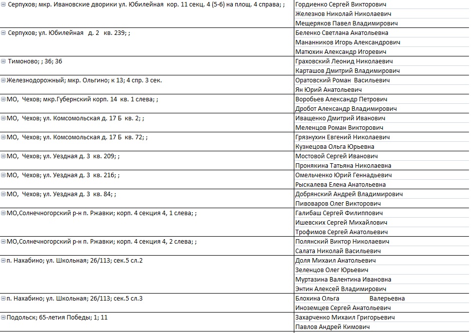 Что, не реально сделать единый файл заключенных договоров?! И просто тупо проверять через фильтр?! Это не так трудно сделать и времени много не займет, просто это никому не надо, кроме нас с вами. Наплевать им на нас, вот и все.... Два месяца назад отправили в ТС по эл.почте письмо, что в списке извещений сразу проглядывают двойники, указали где, кто и что?! Во вчерашнем списки эти же ФИО с этими же изв-ми на одну кв-ру. Хорошо если их не выдали людям или люди сами увидели, а если нет?!