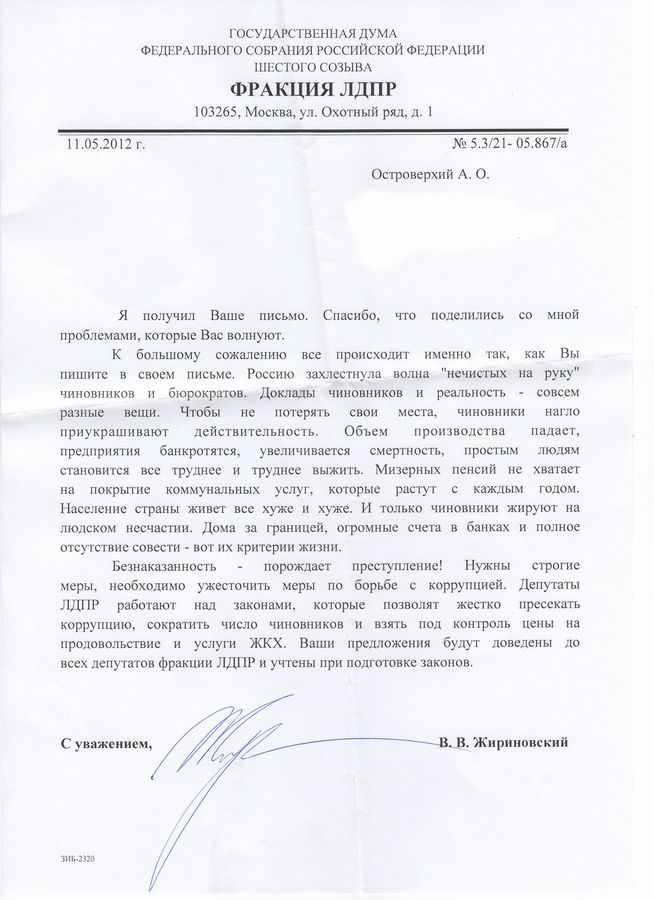 А у них всегда так. Зато необычноfrederic13 писал(а):Ответ из ЛДПР по нашему обращению