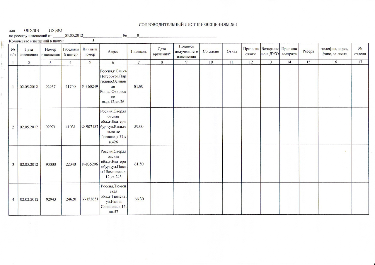 Не,не,не... Я-ж, говорю что только одно у них взял извещение.Сочувствую.. И как собираетесь вручать ещё ЧЕТЫРЕ извещения?