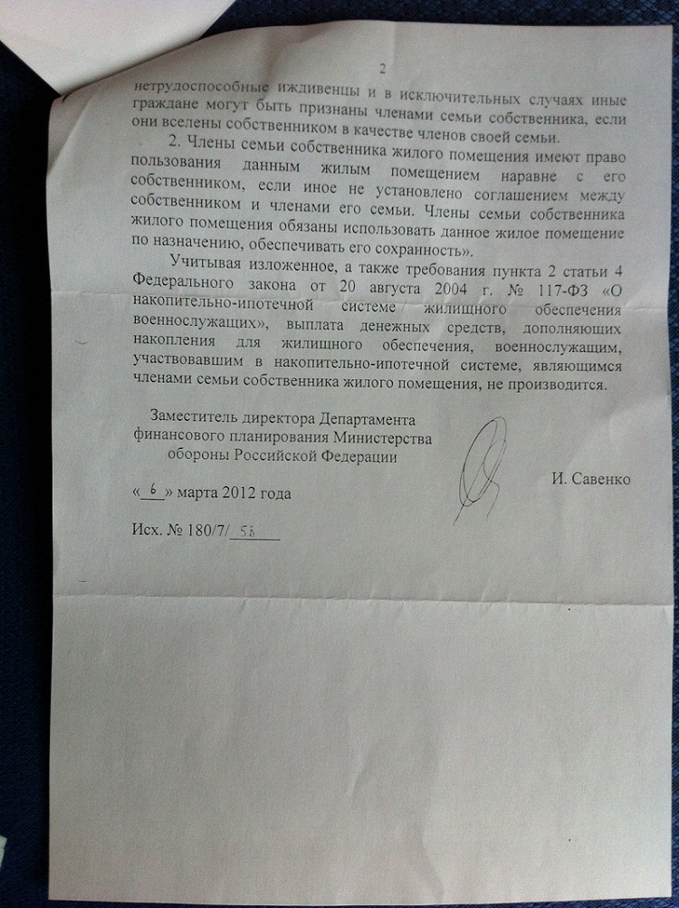 лично я еще и в плюсе остался, да и самый большой плюс впереди, когда родное МО еще разок восстановит меня и исключит, я тогда хоть накопления посчитаю им в окончательной форме.квартиры покупают, но что-то у меня получилось, что я своих средств на нисовскую квартиру потратил не 7-13%, гораздо больше, ибо только разница в задолженности без учета предстоящих процентов и комиссий банку и прочих расходов при покупке без добавления своих средств составила 29,37%(793т.р./2700т.р.).