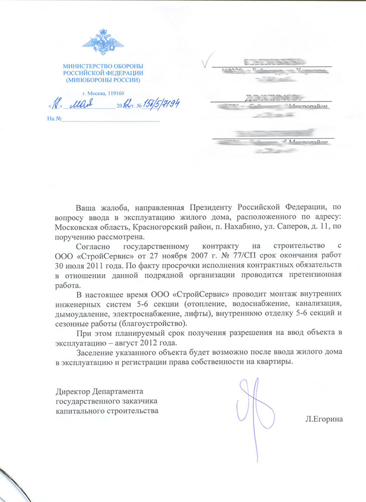 Предлагаю собрать все подобные ответы из МО и в обратку им отослать ксерокопии с просьбой обосновать! И президенту тоже, чтоб разобрался! Долго шарила в просторах интернета в поисках Егориной Л. нашла) http://www.oao-oboronstroy.ru/o-kompani ... irektorov/ Егорина Лариса