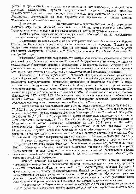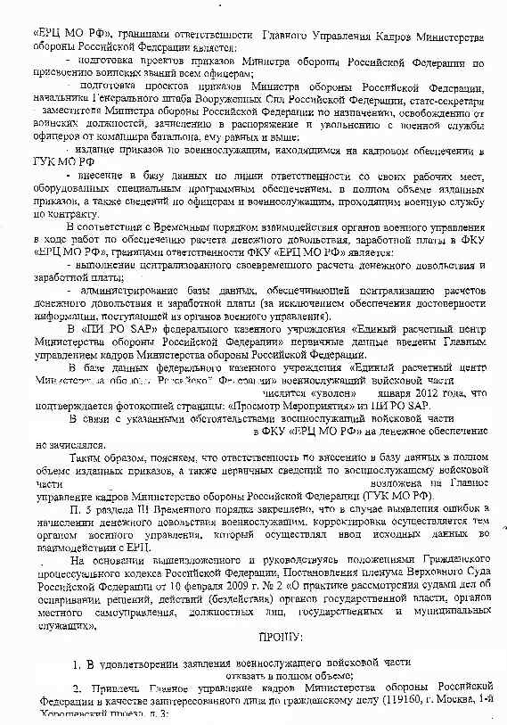 Стандартные возражения ЕРЦ в суде по требованиям военнослужащих: