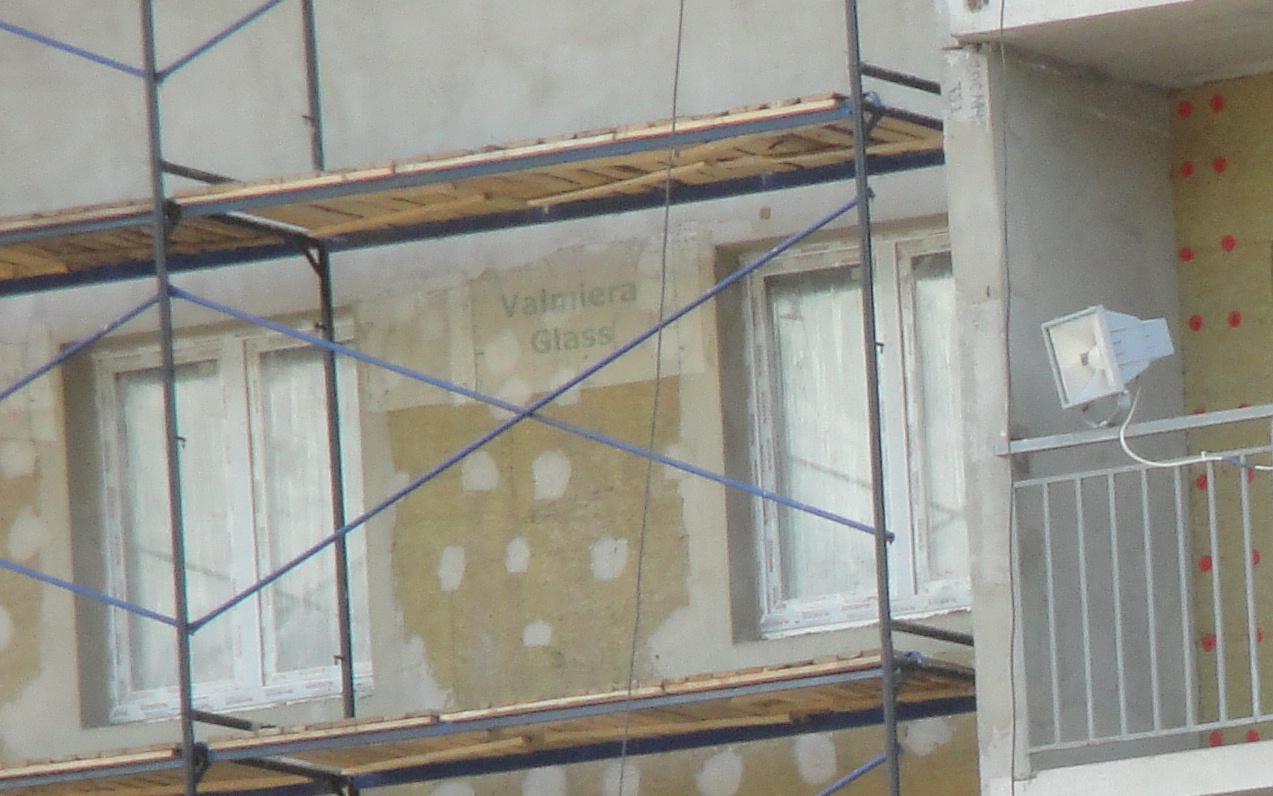 За месяц с прошлой съемки сняты леса с двухподъездного дома, начата его внешняя побелка.