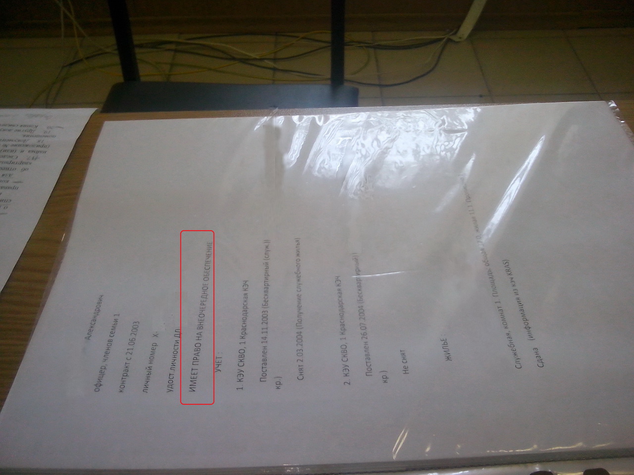 #6808Ну не знаю как в целом обстоят дела в обеспечении жильём уже уволенных военнослужащих, но, при сдаче документов в РУЖО, когда девушка отвлеклась я увидел и попробовал запечатлеть на себя вот такую карточку, в которой было указано что я внеочередник, хотя уволен в 2009 году.А что делать с уволенными в запас? Значит распоряженцам на выбор, те кто ждет по 5- 10 лет в что выбрали?