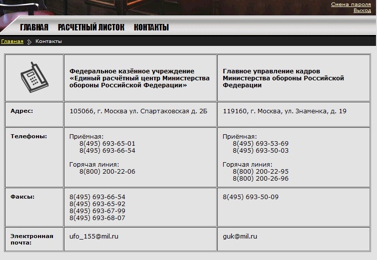 Проще по электронке в ЕРЦ письмецо-заявление написать( ufo_155@mil.ru ), мне ответили через 5 дней, на тел. перезвонила дэвушка и объяснила почему денюшек меньше заплатили...Кто подскажет? Помимо этой долбаной горячей линии есть еще телефоны ЕРЦ?