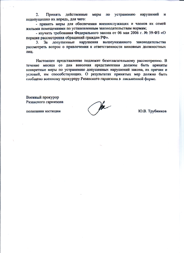 Да и ещё на днях подал жалобу в военную прокуратуру по вопросу аренды, как только получу ответ, сообщу дополнительно.