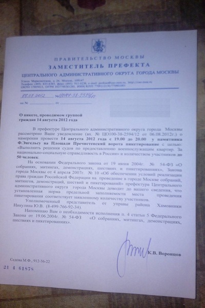 14 августа (вторник) с 19.00 до 20.00 у памятника Ф.Энгельсу (площадь Пречистинских Ворот) метро Кропоткинская, состоится пикет ОБЕСПЕЧЕНИЕ ЖИЛЬЕМ ВОЕННОСЛУЖАЩИХ. Прошу всех поддержать мероприятие, прибыть к указанному времени. Официальное разрешение властей Москвы на проведение пикета получено.