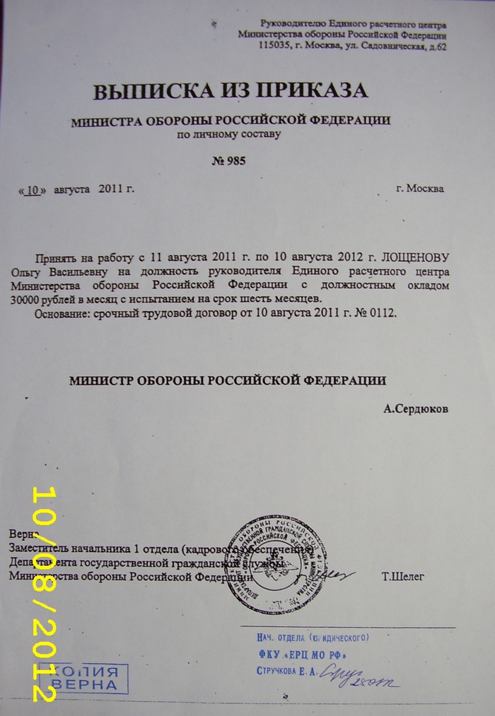 Что Вы ёрничаете? Подготовкой приказов, представлением их на подпись министру, внесением данных по выплатам военнослужащим занимается начальник ГУК, переводом денежных средств на карты и оформлением денежных аттестатов - руководитель ЕРЦ. Это их функционал. При чём тут ваши секретарши,посыльные? Следуя Вашей логике, можно привлечь ещё банки, почты, почтальонов и т.д... Впрочем, привлекайте, если хотите. Ваше право.