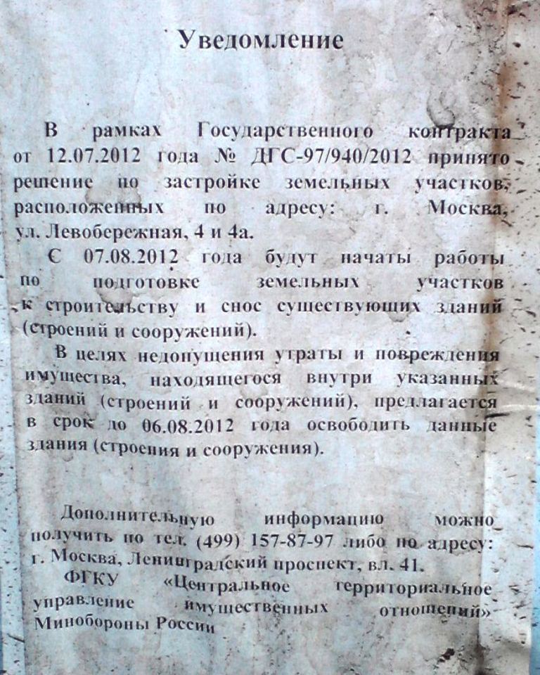 Такая новость заслуживает отдельной ветки: Москва, ул.Левобережная