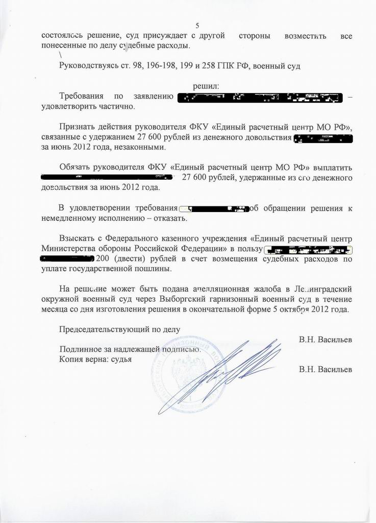 видимо в 94ом суде решили судить одинаково и военных не обижать удержанием