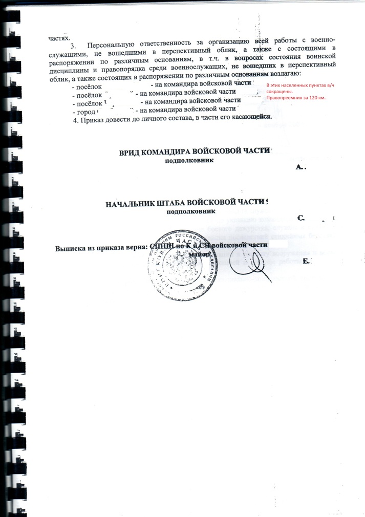Да ни один командир не издаст такой приказ, в котором определит место пребывания своего распоряженца в пунктах, где нет подразделений своей части