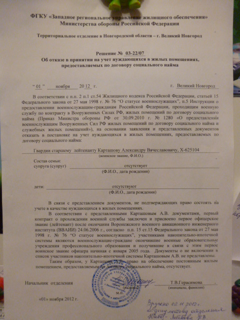 Параллельно так как путь от рапорта на расследование до того как командир соизволил провести его все таки.....я подал документы на признание нуждающимся в РУЖО. И получил отказ который основывается на том что мной в РУЖО не был представлен документ что я не НИС-овец.