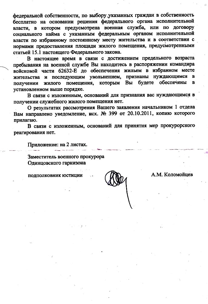 Уважаемый,воякам увольняемым по ОШМ и ставшими на учет для получения пост.жилья служебные предоставляются только по их желанию,этот путь мы прошли,с прокуратурами,с судями,я просто не стал это описывать,команч хотел загнать нас в служебки(а то домов понастроили для вояк думали что какие нибудь идиоты будут получать у нас в Муходрищенске),но мы показали ему фак.Если отказались от служебки, то и компенсацию платить не должны. Сами не хотите жить в служебном жилье...