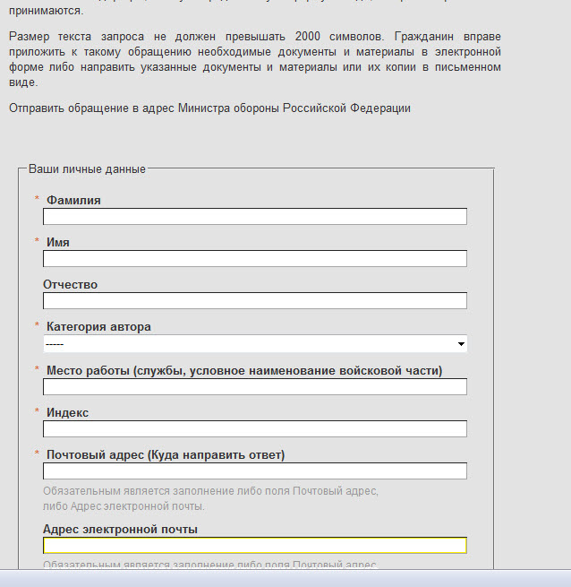 кто знает сайт приемной МО РФ, для отправки электронного письма.